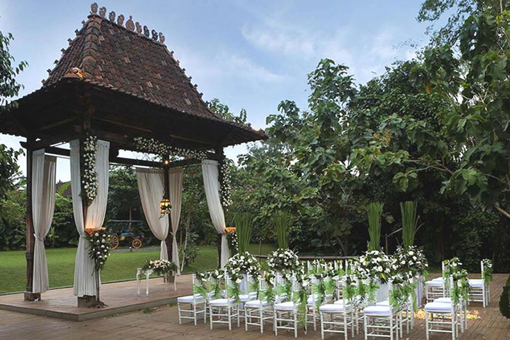 Plataran Canggu Bali Resort and Spa is a beautiful resort with authentic Balinese architecture and lush tropical garden surround it. This resort is an oasis of amazing peace and tranquility – a secret hideaway disturbed only by the twitter of birdsong and the crickets’ hum. Furthermore, Plataran Canggu Bali Resort and Spa is well featured by the beautiful landscape garden designed in the form of a labyrinth and crossing a river through shaky bridge to the spectacular spot for wedding, gala dinner, yoga class as well as cocking class. The legacy of the renowned landscape architect of Made Wijaya that design Plataran Canggu landscape with unique structure allows guests to wander off and explore the ultimate privacy and serenity of the resort. Therefore, Plataran Canggu Bali Resort and Spa is one of the popular Canggu Hotels ideally for relaxation during your vacation in Bali.